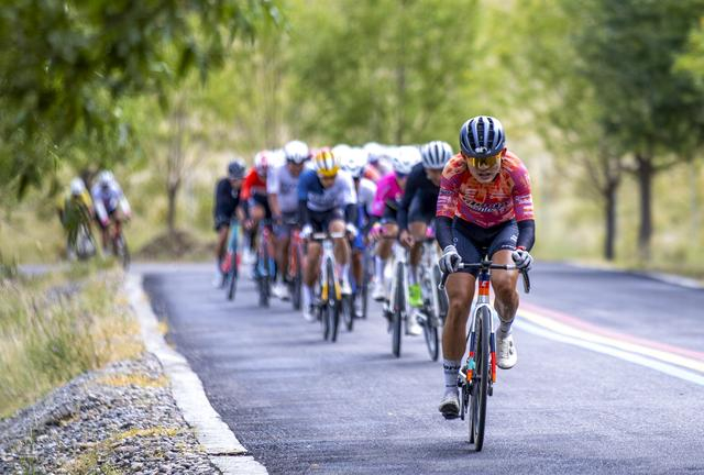 9月12日,公路自行车男子精英组选手在比赛中。新华社记者 姜帆 摄
