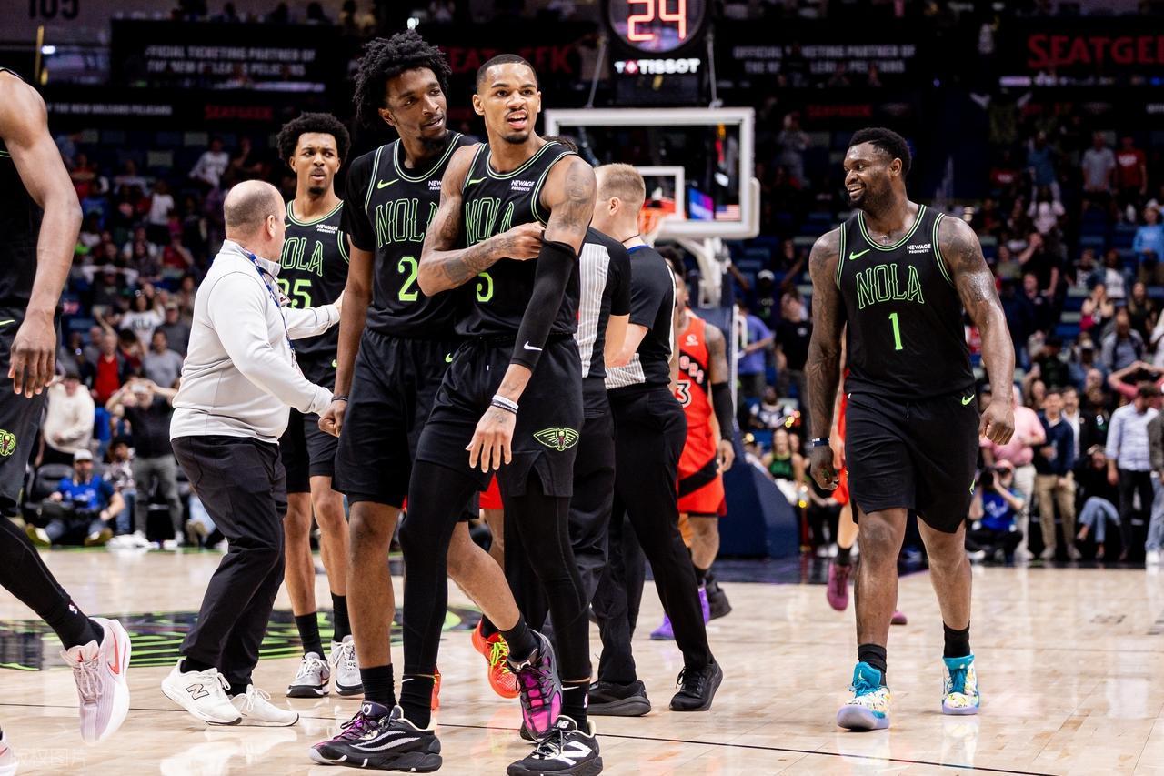 第二场,鹈鹕迎战猛龙。赛前鹈鹕刚大胜奇才,势头正劲,猛龙则是刚输给火箭,状态低迷,而且这场比赛博伊尔斯还缺战,对猛龙来说更是雪上加霜。一开场,两队就打得难解难分,比分你追我赶,交替领先,没有一方能拉开差距。墨菲和奎克利两人手感爆棚,单节就都砍上双,进攻效率拉满。第二节依旧是胶着战局,整节下来,最大分差都没超过3分,攻防两端你来我往,看得人手心冒汗,半场结束时,鹈鹕也只勉强领先2分。