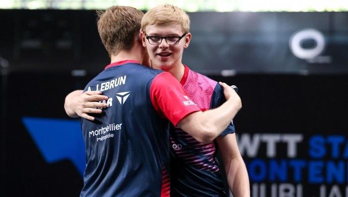 在男单1/16决赛中,法国队有一场队内之战:费利克斯·勒布伦3-1西蒙·高茨(4-11,11-7,12-10,14-12)。