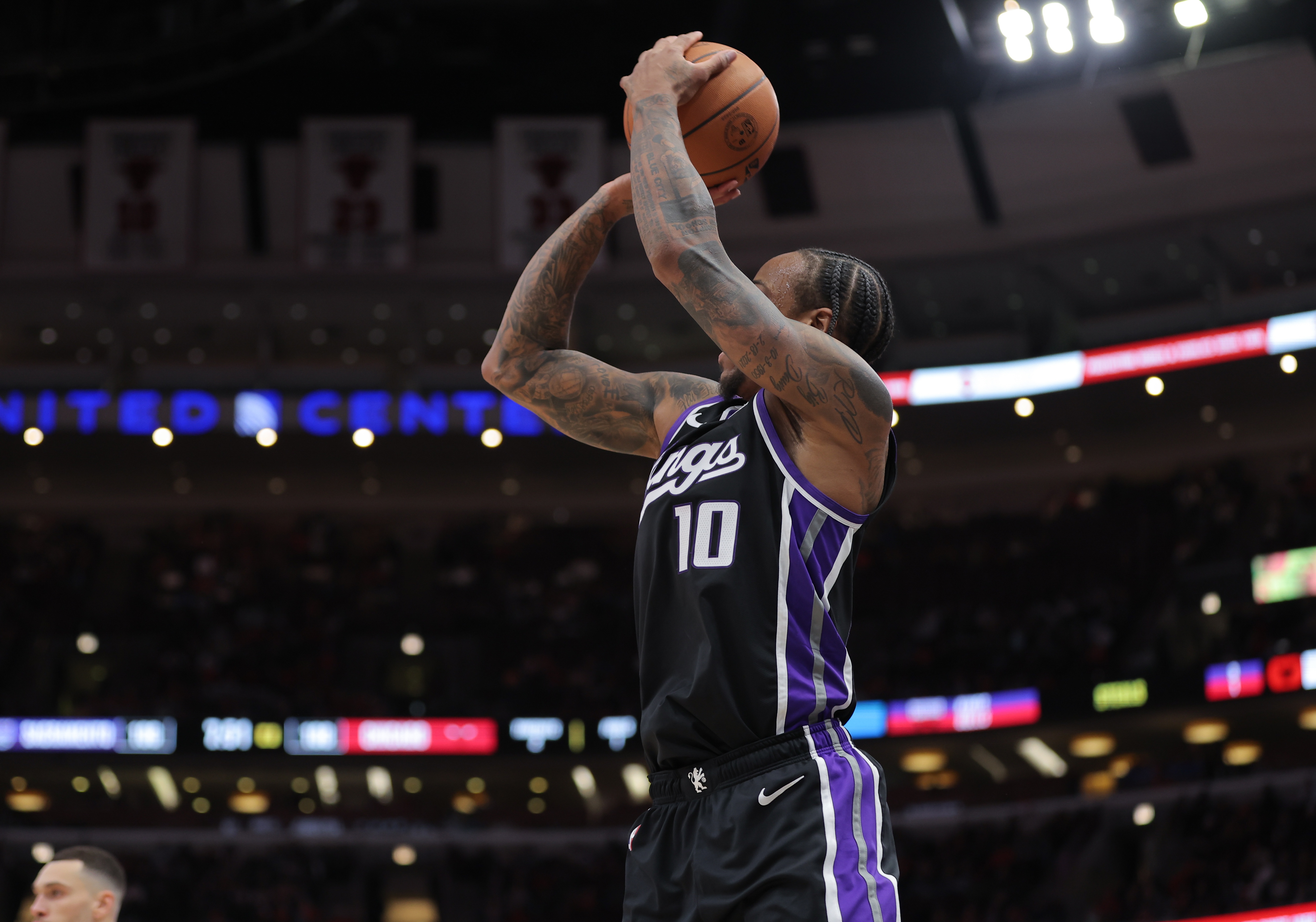 1、德罗赞 640记中投命中率45.8% 84记三分命中率32.8%